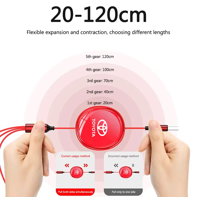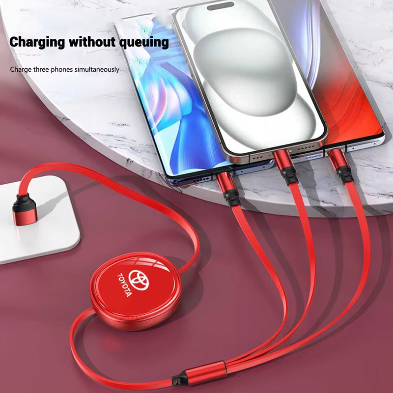 100W Car Charging Data Cable – 3-in-1 Fast Charger for Toyota Cars