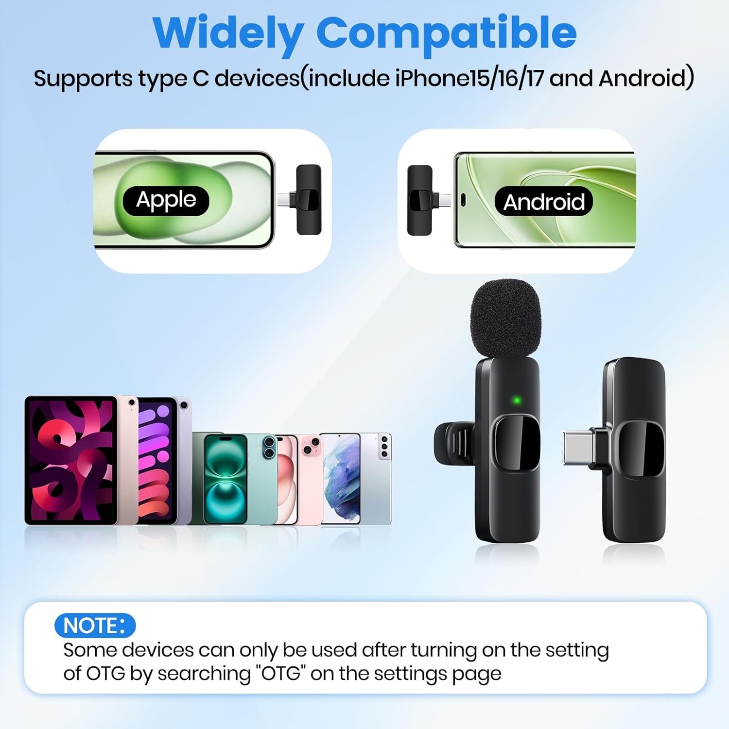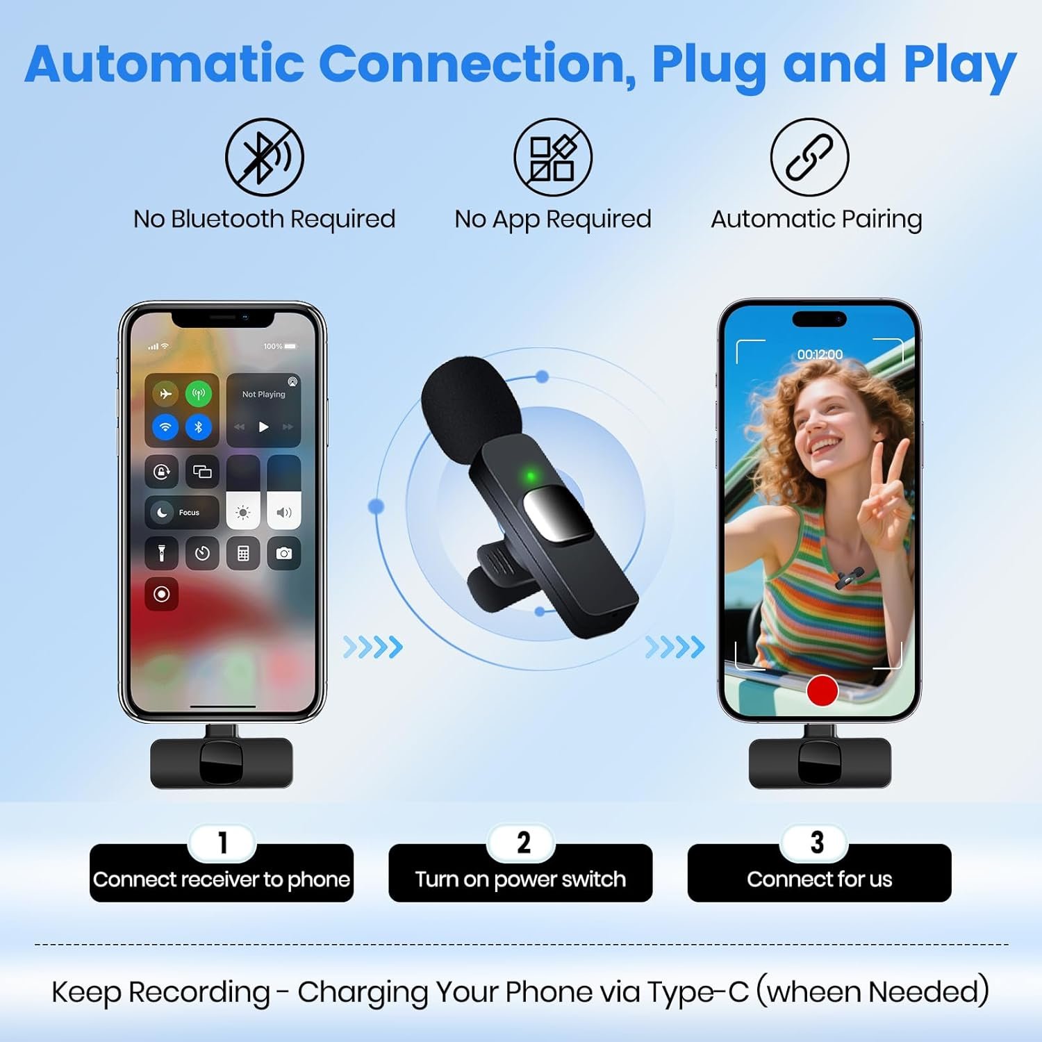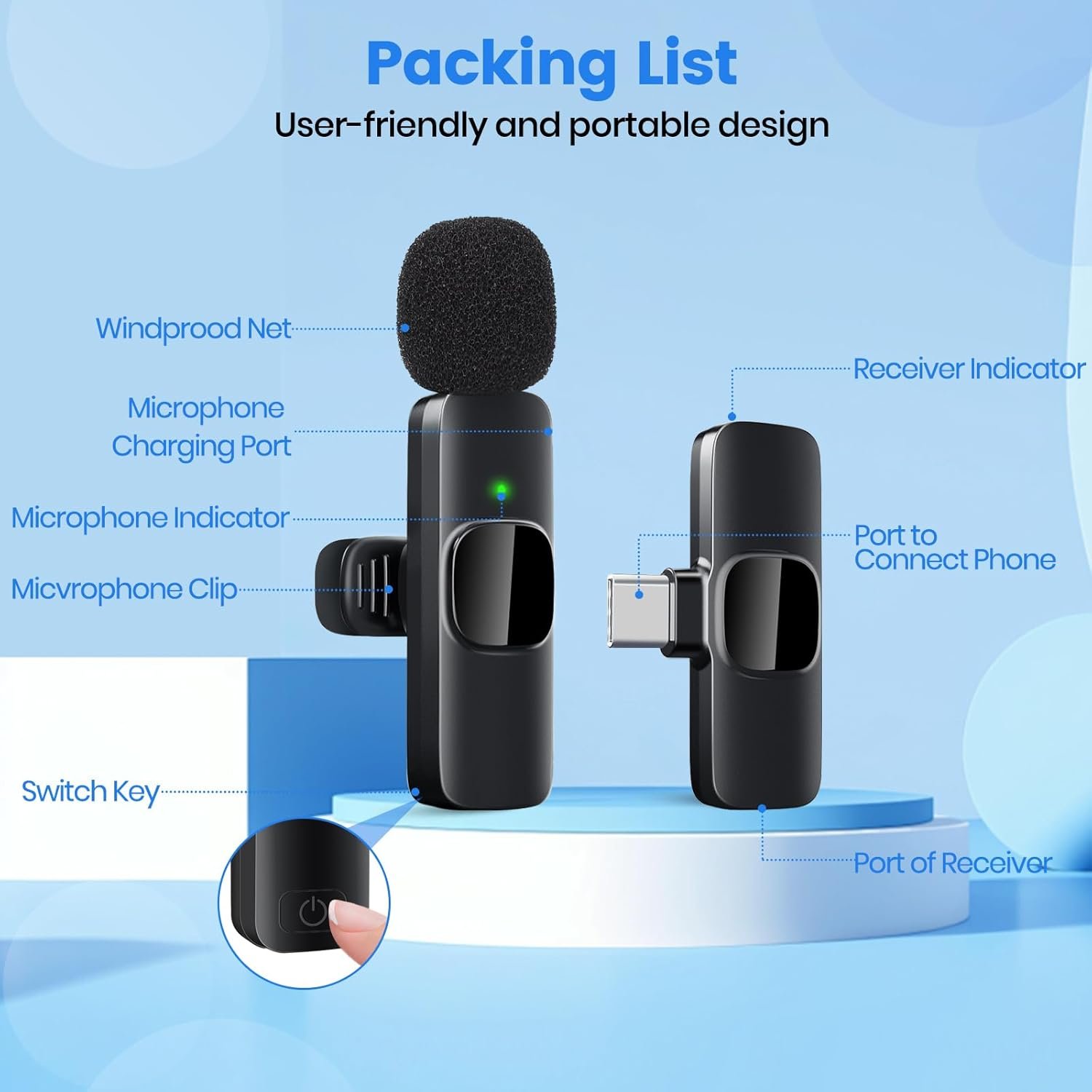 Capture crisp, professional-sounding audio with the Wireless Lavalier Microphone with Noise Reduction β a must-have tool for vloggers, YouTubers, interviewers, educators, live streamers, and mobile content creators. This compact lavalier mic clips easily onto clothing and connects right into your smartphone or device without complicated setup. Built-in noise reduction technology minimizes background interference, delivering clearer voice recording than your deviceβs built-in mic. The plug-and-play design works with both iPhone and Android devices, making it versatile for on-the-go recording, podcasts, Zoom meetings, TikTok videos, and more. With wireless convenience, you get freedom to move and talk naturally while maintaining stable audio quality. If you want a simple, portable, and high-quality wireless lapel mic that enhances your recordings instantly, this is a smart upgrade for creators of all levels.