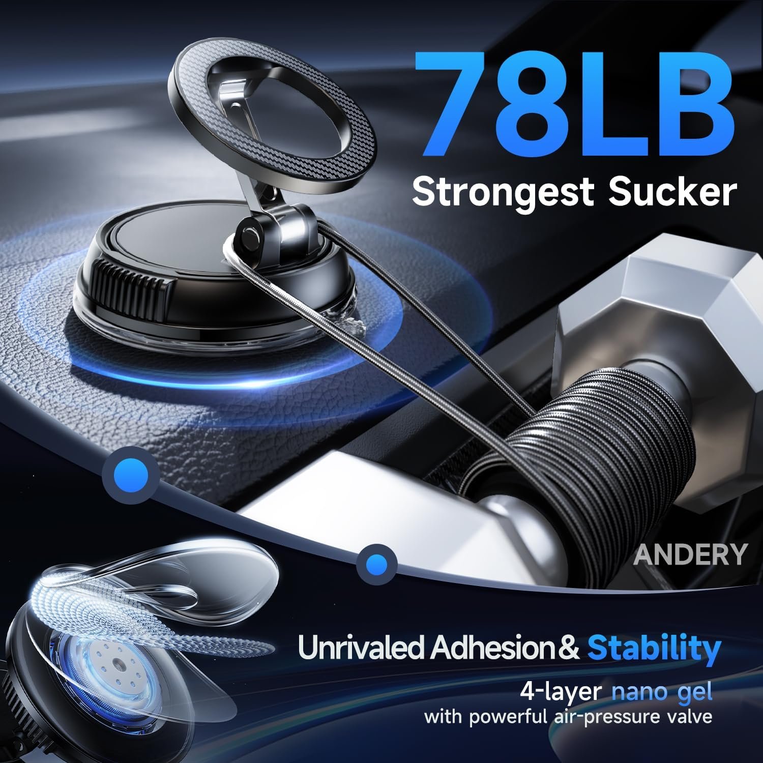 The ultra-strong suction base provides stable mounting on dashboards, windshields, and smooth surfaces. You don’t have to worry about slipping or falling.